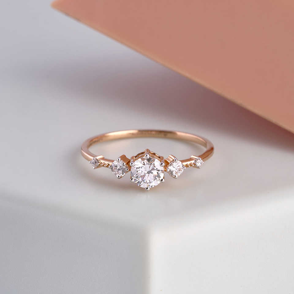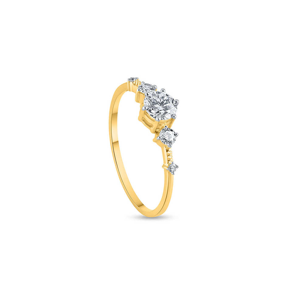 แหวนเพชรเดี่ยวทรงกลมสีทองห้าชิ้น