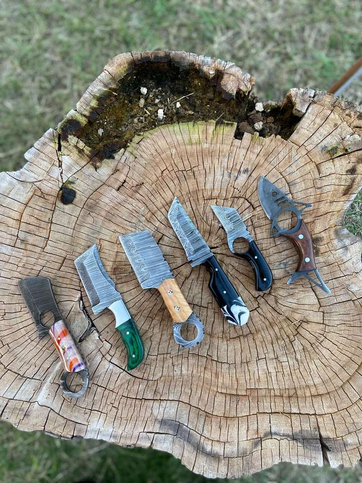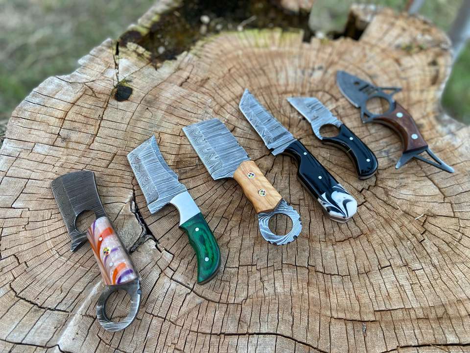 มีดล่าสัตว์และมีดแล่หนังใบตายเหล็กดามัสกัส พร้อมวัสดุด้ามจับหลากหลายแบบ รับผลิตตามสั่ง (OEM) มีดคมตรง