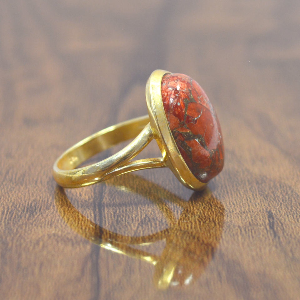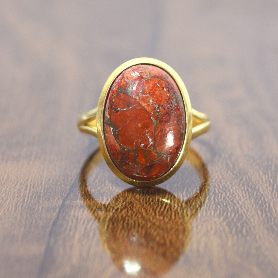 แหวนพลอยปะการังสีแดงแวววาวแหวนเงินสเตอร์ลิง925อัญมณีปะการังชุบทอง18K ขายส่ง
