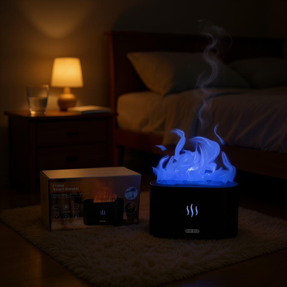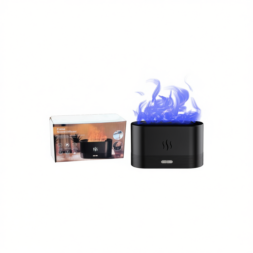 เครื่องเพิ่มความชื้นในอากาศแบบเปลวไฟ 101-200 มล. เครื่องพ่นไอน้ำอโรมาเธอราพี สำหรับใช้ในบ้าน วางบนโต๊ะ ใช้ไฟฟ้า บรรจุภัณฑ์กล่องพลาสติกสี