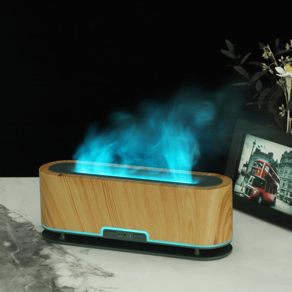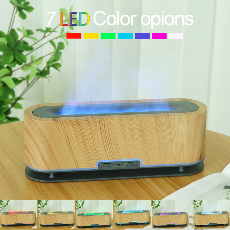 เครื่องทำความชื้นแบบเปลวไฟพร้อมแสงจำลองเปลวไฟ 7 สีสำหรับห้องนอนโฮมออฟฟิศเครื่องกระจายกลิ่นหอมความจุ 0.5 ลิตร 35 เดซิเบลการทำงานที่เงียบสงบ
