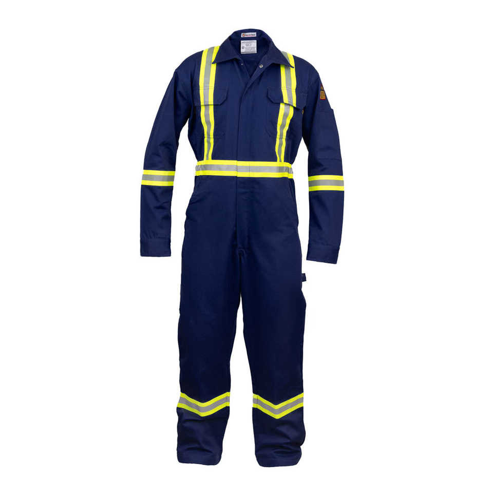 ชุดคลุมป้องกัน Hi VIS ทนทานต่อเปลวไฟ88% C/12% N สีน้ำเงินเข้ม2X-Large เสื้อผ้านิรภัยมองเห็นได้ชัดเจน