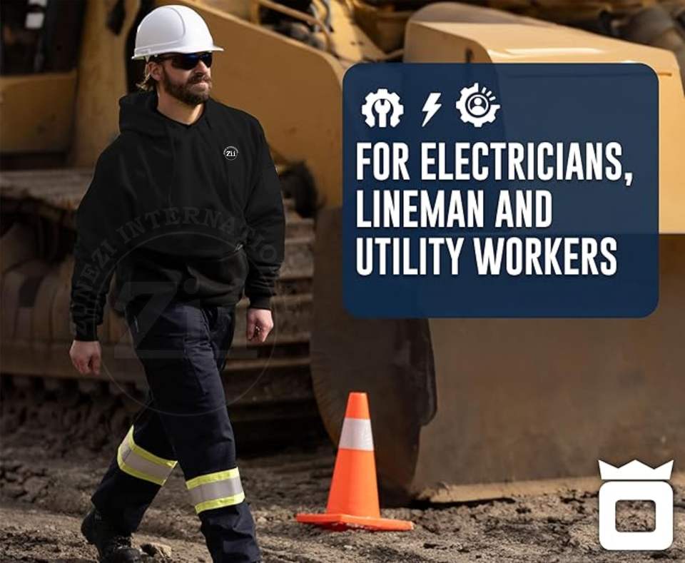 เสื้อสเวตเตอร์ทำงานสำหรับผู้ชายสีเขียวกันไฟสะท้อนรายละเอียดโพลีเอสเตอร์กันน้ำปรับแต่งโลโก้ได้ตามต้องการ ANSI Class 2