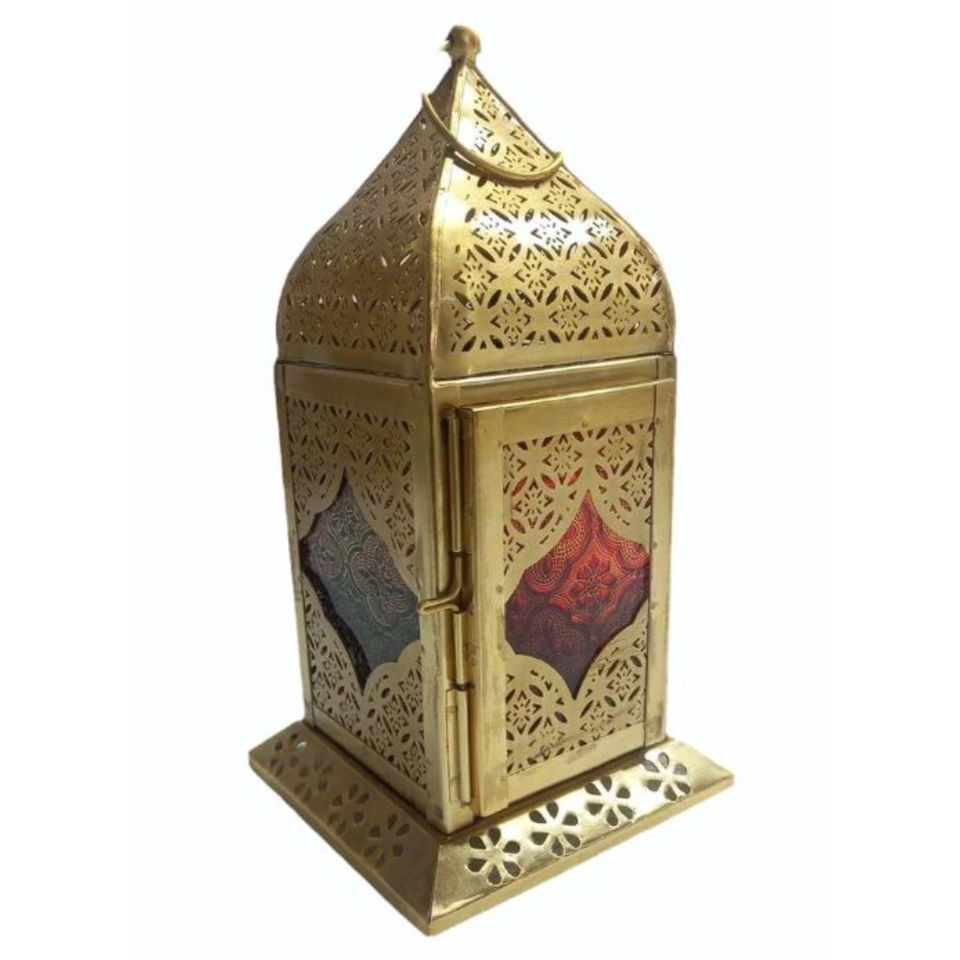 โคมไฟโลหะโมร็อกโกไร้เปลวไฟแบบหรูหราตกแต่งบ้านแขวนคริสต์มาสในร่ม