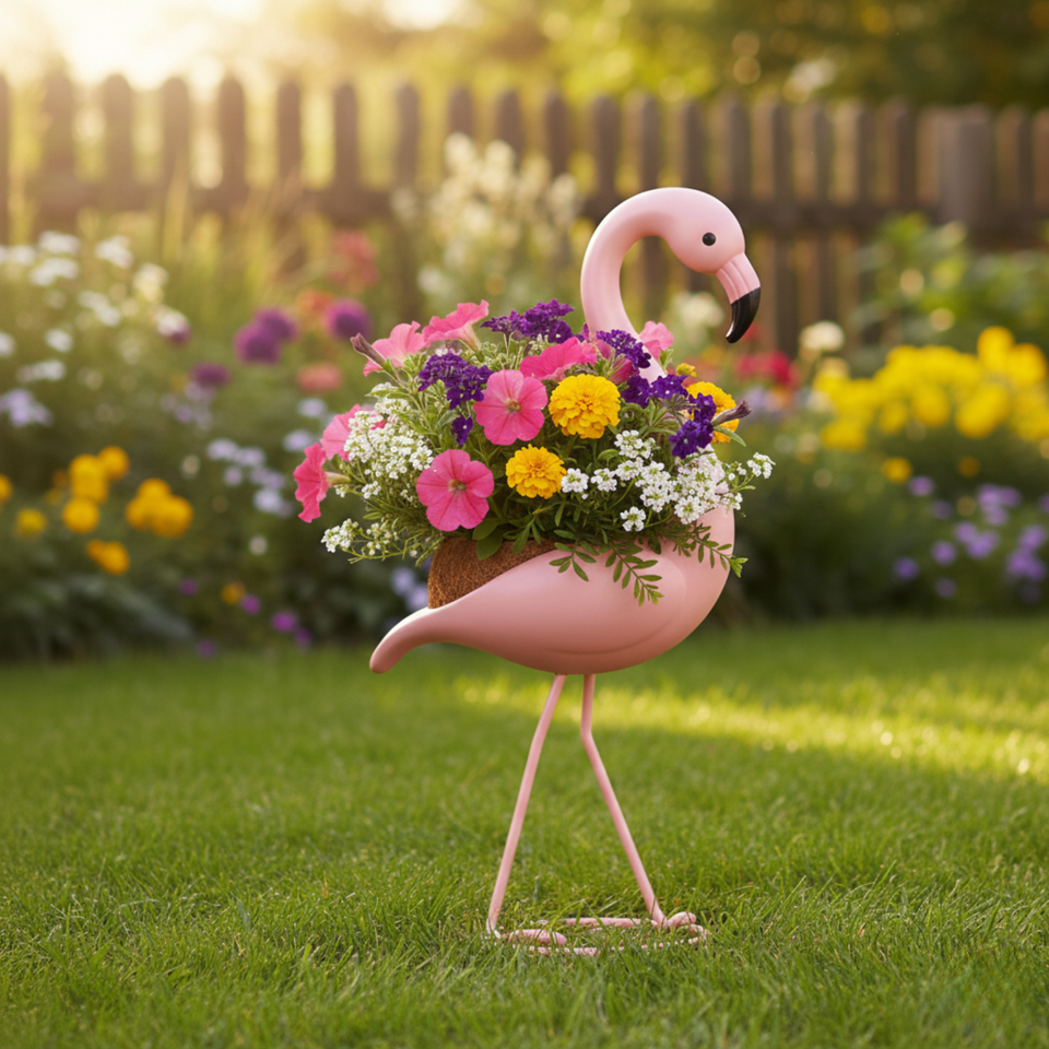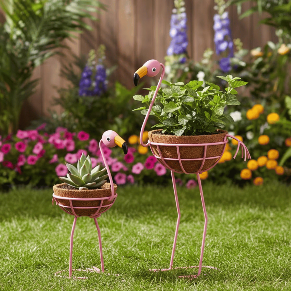 ขาตั้งต้นไม้โลหะรูปนกฟลามิงโก พร้อมกระถางใยมะพร้าว สำหรับตกแต่งสวน สนามหญ้า ระเบียง บ้าน