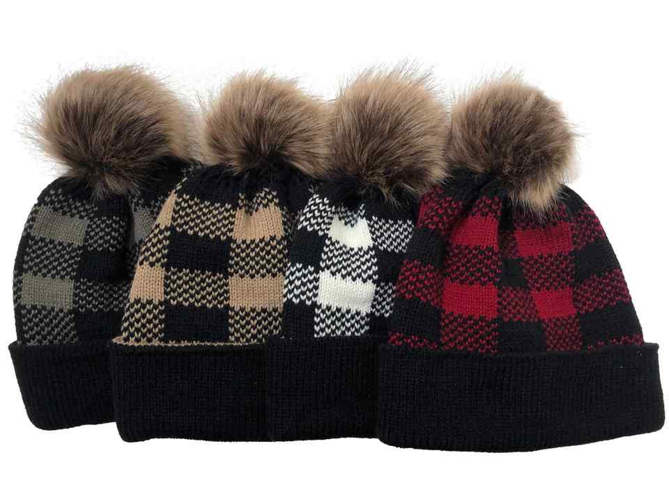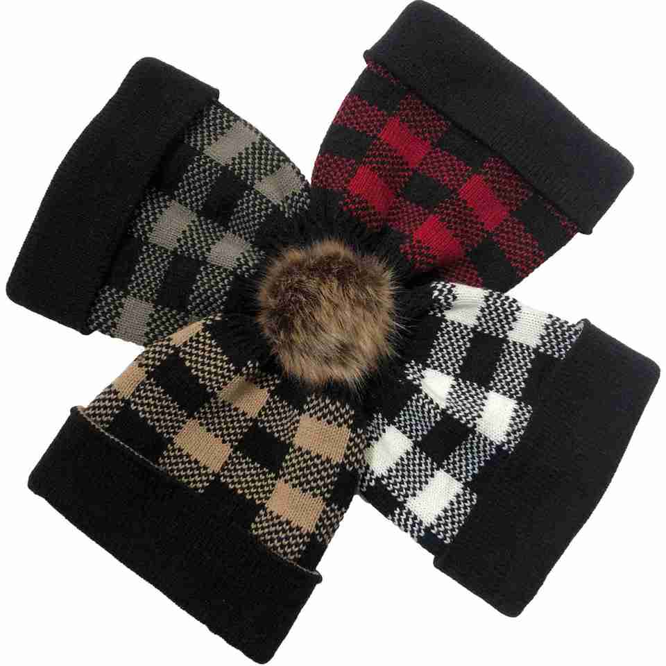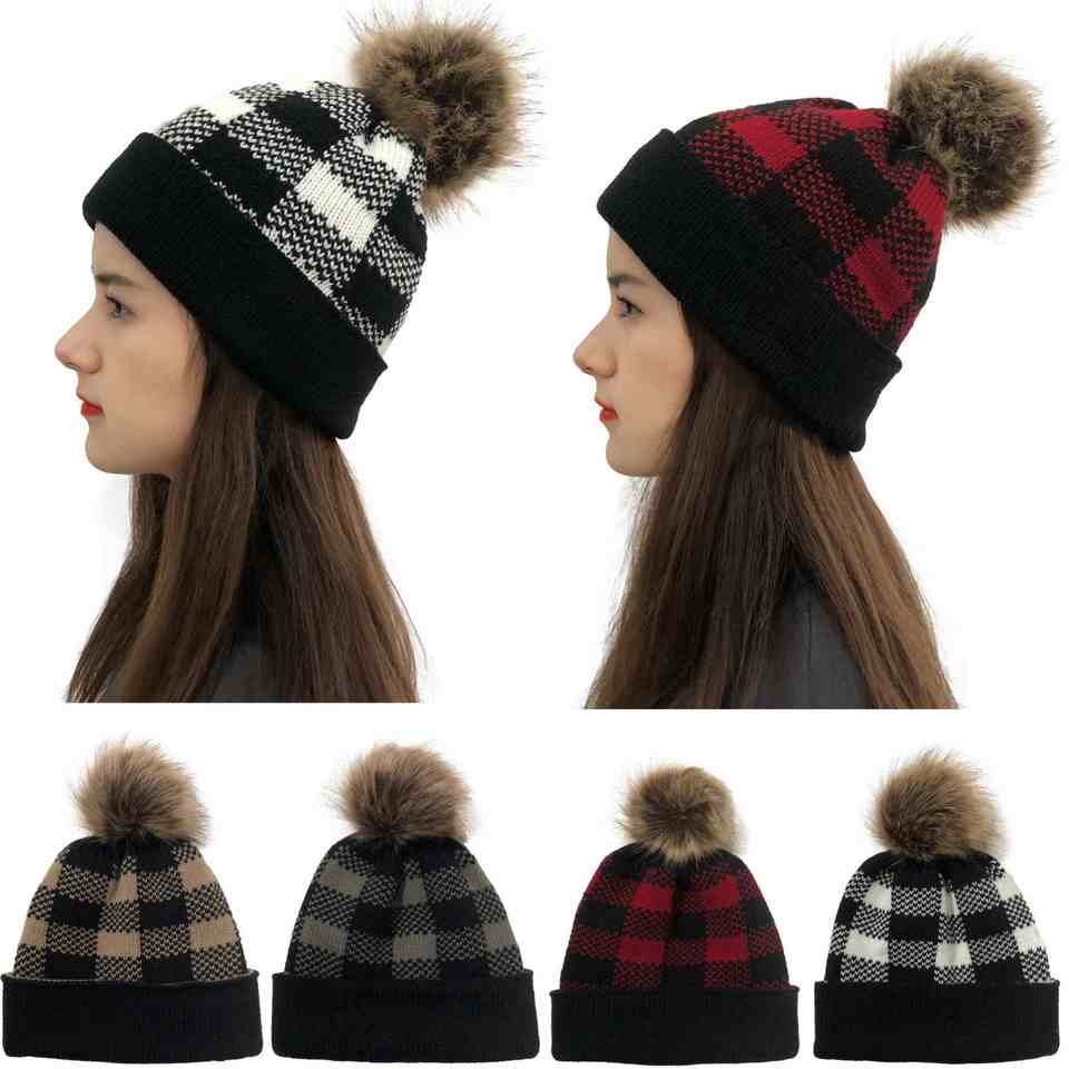 หมวกถักสำหรับผู้หญิงหมวกแฟชั่นคริสมาสต์ลายตารางสำหรับฤดูใบไม้ร่วงและฤดูหนาว