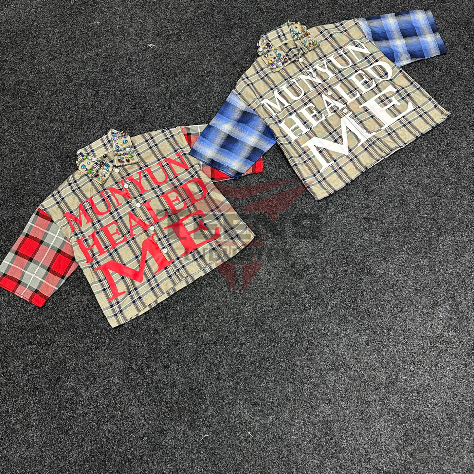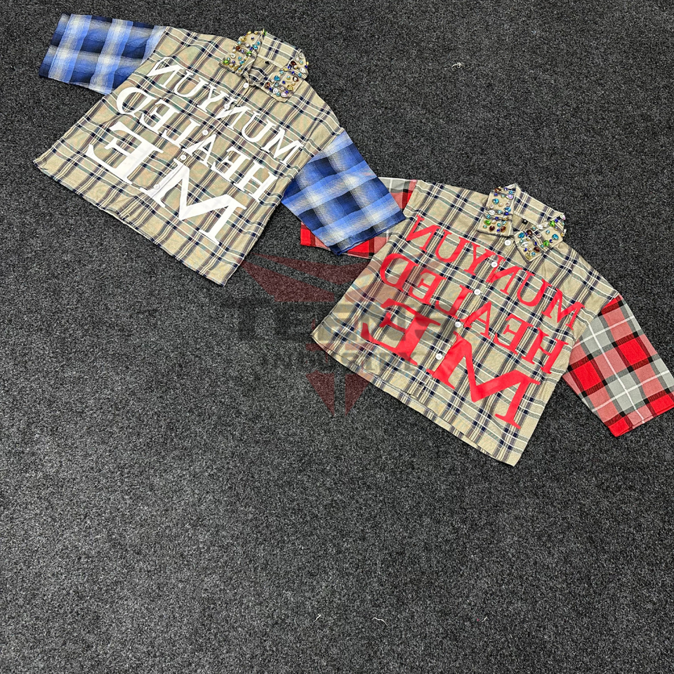 เสื้อเชิ้ตผ้าสักหลาดผู้ชาย ปักโลโก้ตามสั่ง ลายสก็อต แขนยาว ติดกระดุม ประดับอัญมณี ผ้าฝ้ายออร์แกนิค 100% ผ้าถัก ระบายอากาศได้ดี