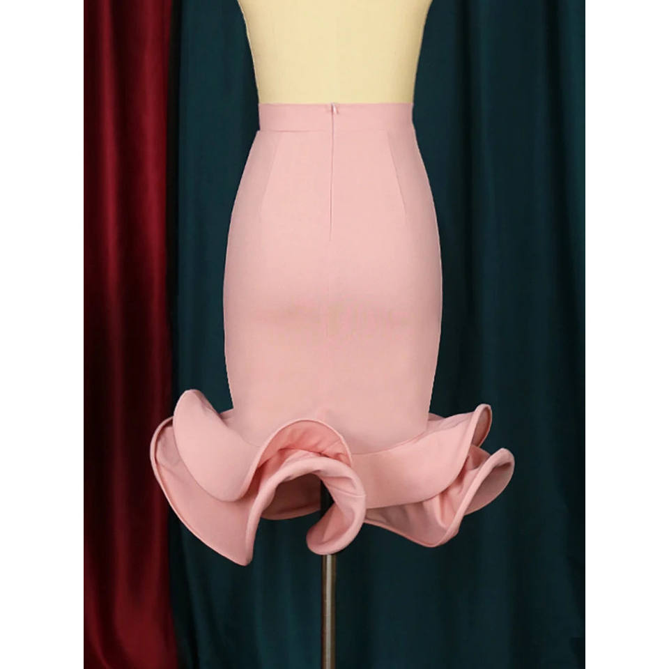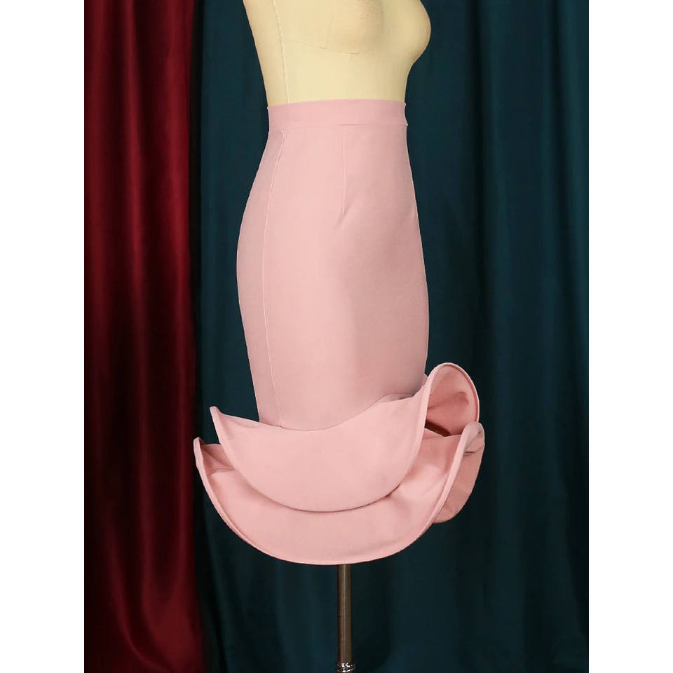 กระโปรงมิดิเอวสูงไม่สมดุลกันแบบใหม่สำหรับผู้หญิง Gumi กระโปรงแบบทีมไซส์ใหญ่
