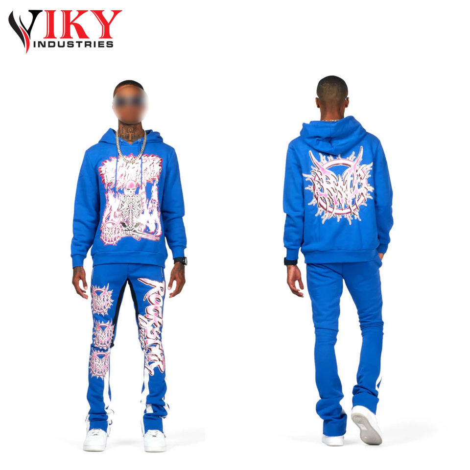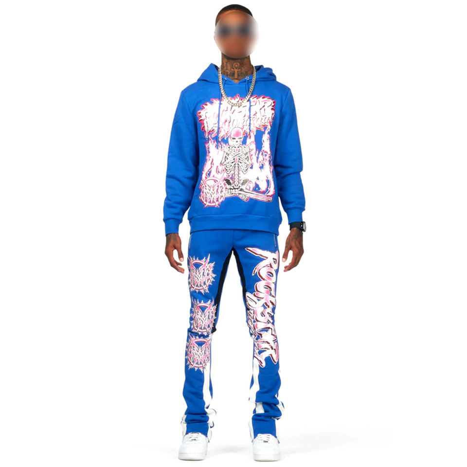ชุดวอร์มพิมพ์ลายกรดซักเสื้อผ้าสไตล์บาน