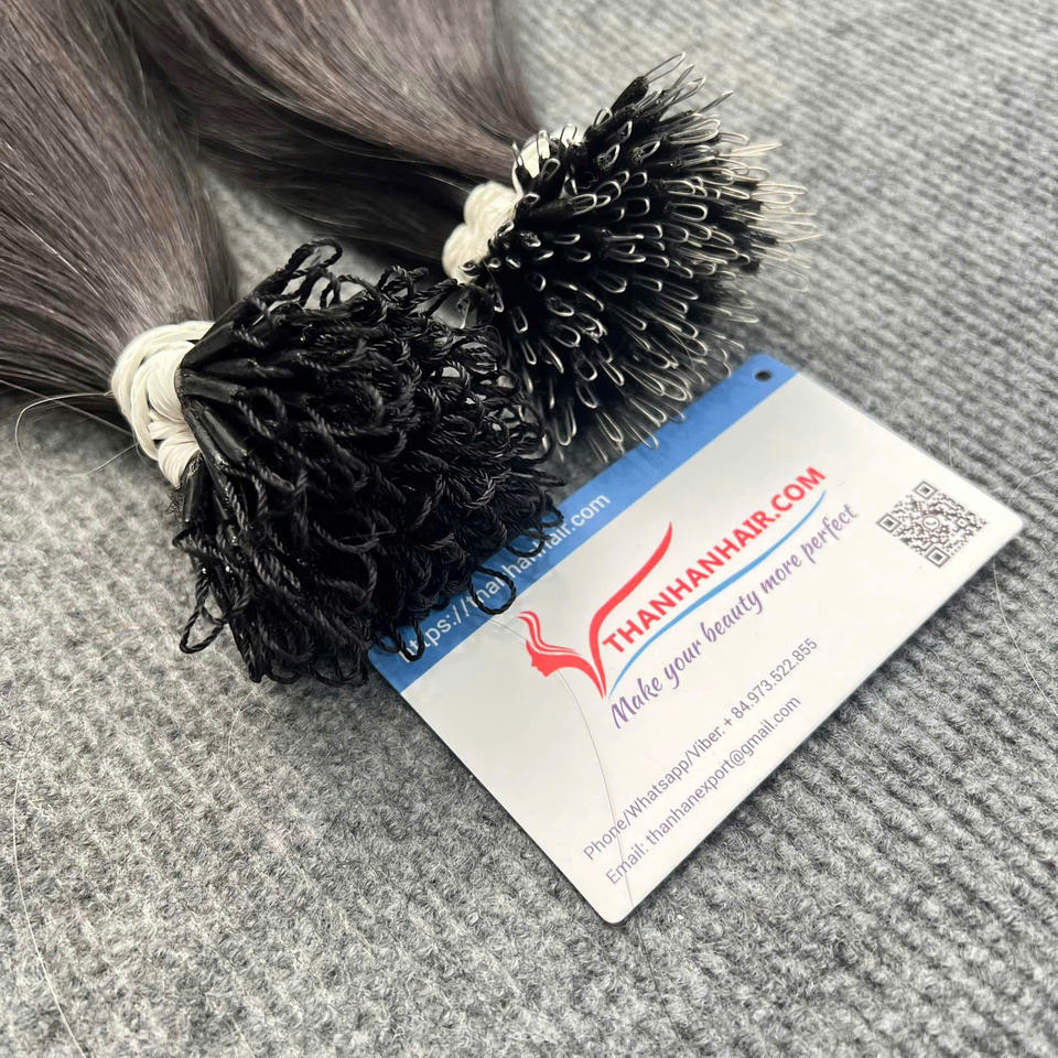ขายแฟลชขายผมต่อแบบแหวนนาโนผมมนุษย์พร้อมเคราตินปลายผมยาวสองชั้น