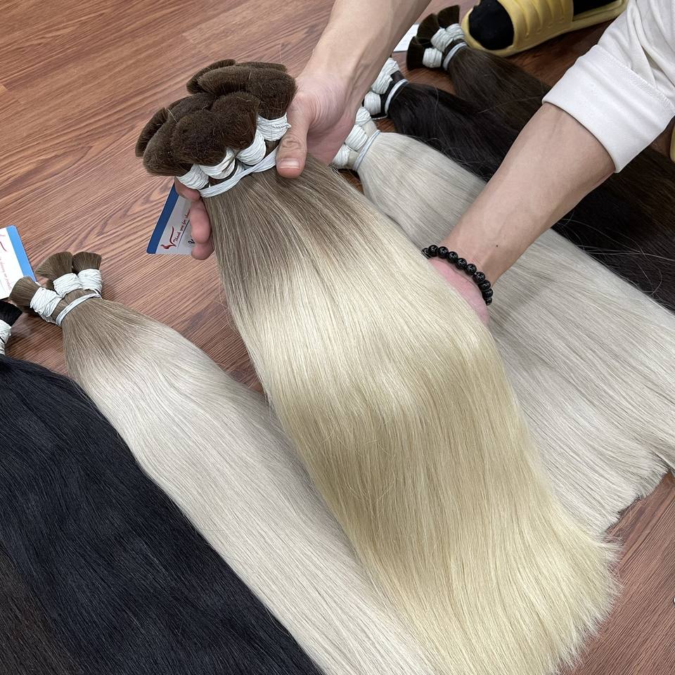วิกผมต่อผมมนุษย์ย้อมสีผมนุ่มเป็นธรรมชาติแบบเวียดนามเป็นกลุ่ม