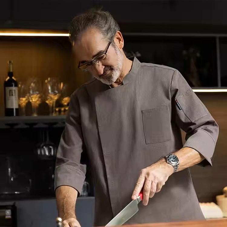 ชุดเครื่องแบบเชฟผู้บริหารแบบปรับแต่งได้สำหรับทุกเพศชุดผ้าฝ้ายระบายอากาศหรูหราสำหรับร้านอาหารโรงแรม