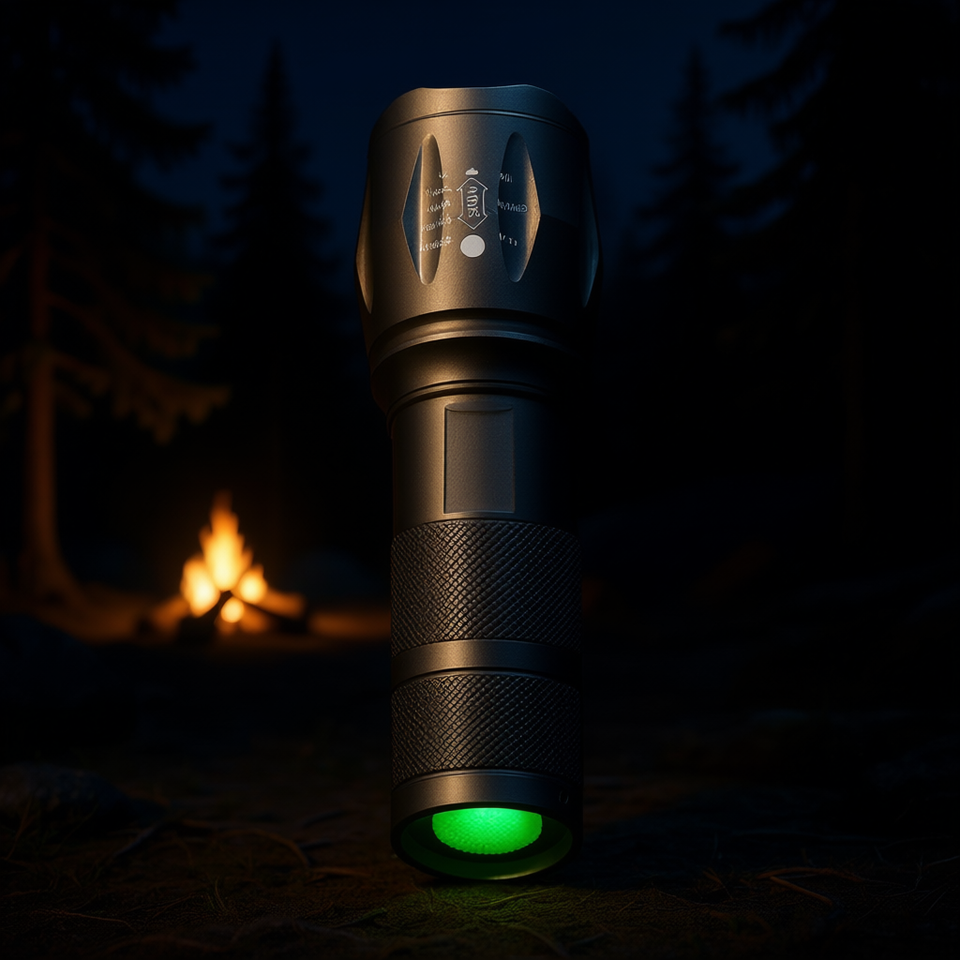 Flashlight 2000 Lumens Green Led Adjustable Focus Aluminum Alloy Camping Light