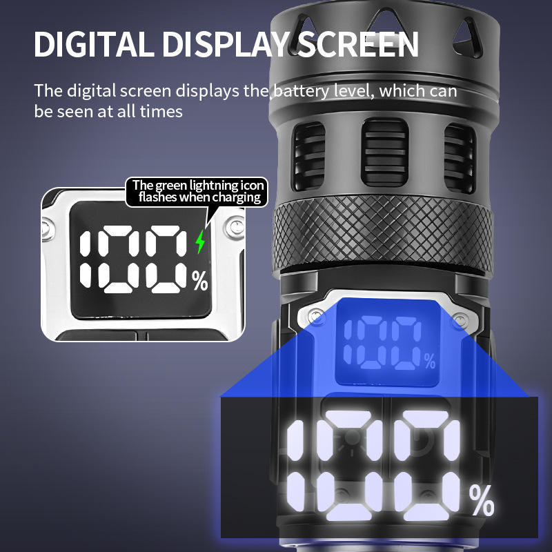 ไฟฉาย 30W เลเซอร์สีขาว RGB 395nm แสงสีม่วง จอแสดงผลดิจิตอลแม่เหล็ก ชาร์จซ้ำได้ กำลังสูง ระยะไกล ไฟฉาย LED