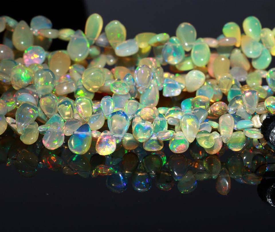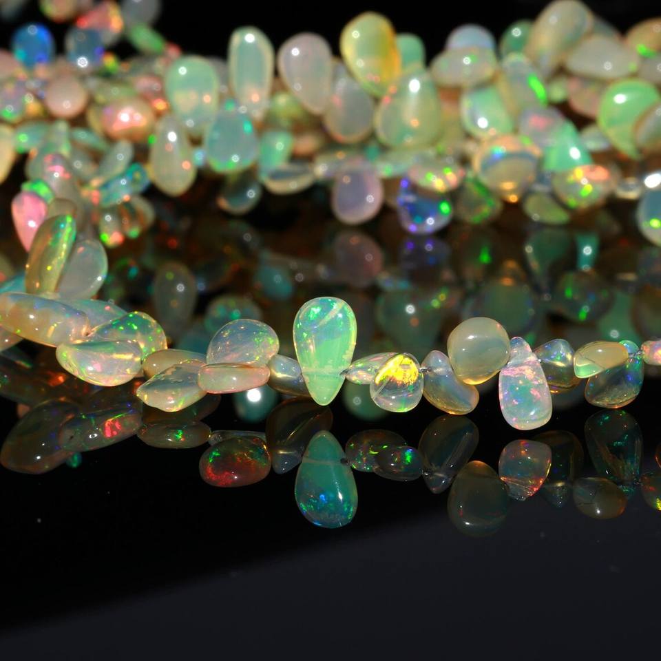 ลูกปัดอัญมณีรูปลูกแพร์แบบเรียบของเอทิโอเปียสำหรับทำเครื่องประดับลูกปัดโอปอลธรรมชาติขนาด8"