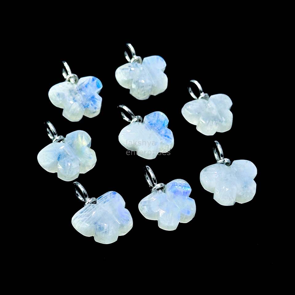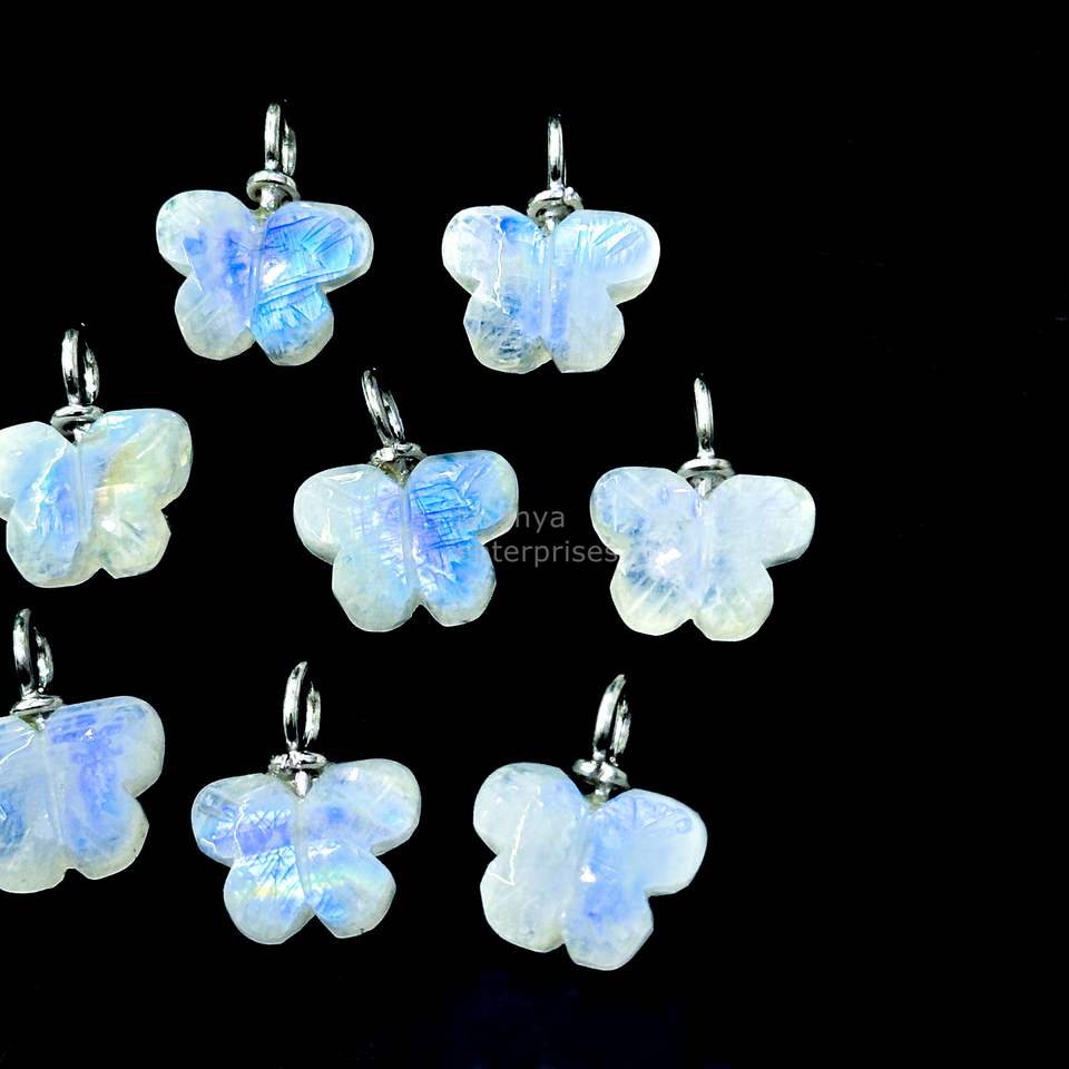 จี้ผีเสื้อมูนสโตนสีรุ้งระยิบระยับ เงินแท้ 925 แกะสลักด้วยมือ ประดับด้วยพลอยมูนสโตนธรรมชาติ สำหรับทำเครื่องประดับ