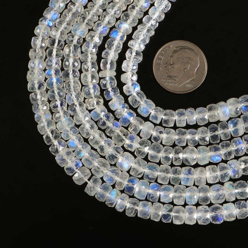 Natural Rainbow Moonstone Faceted Rondelle Beads