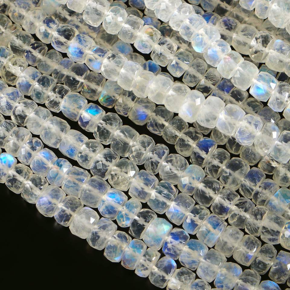 Product name:Natural Rainbow Moonstone Faceted Rondelle Beads