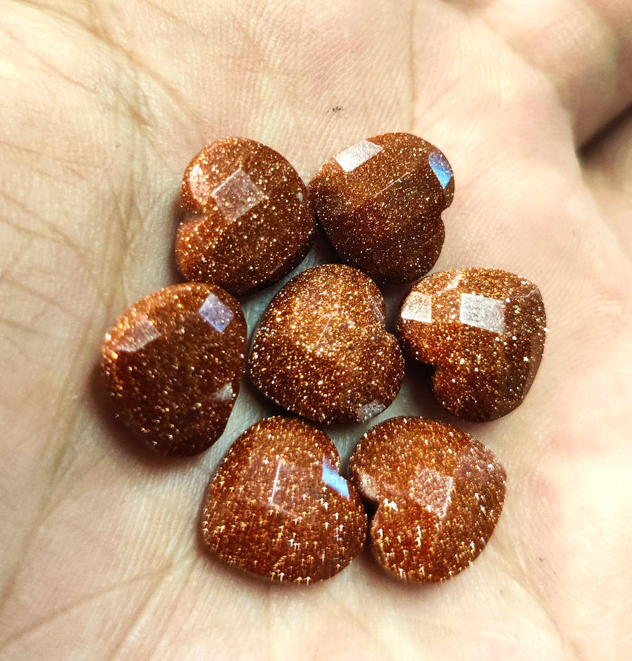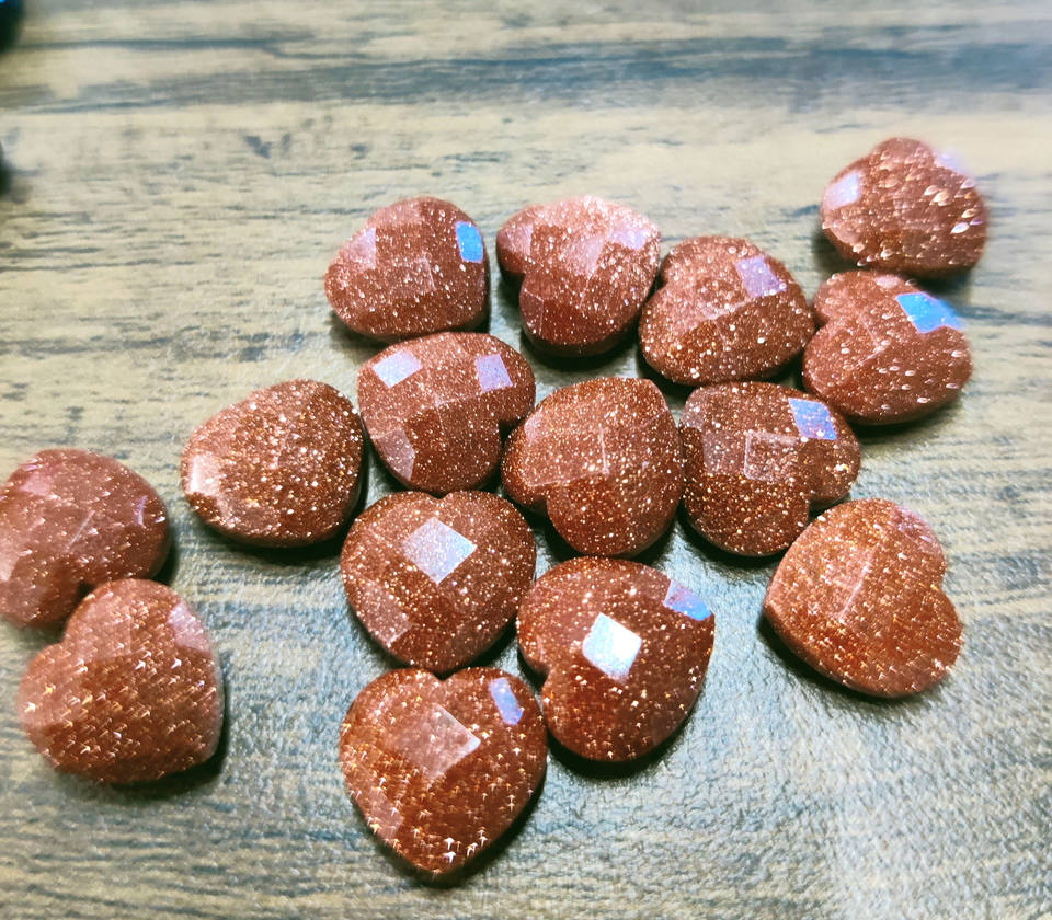 พลอยรูปหัวใจซันสโตนสีทองแวววาวอัญมณีทรงเหลี่ยมเพชรพลอยแกะสลักด้วยมือขนาด10มม.