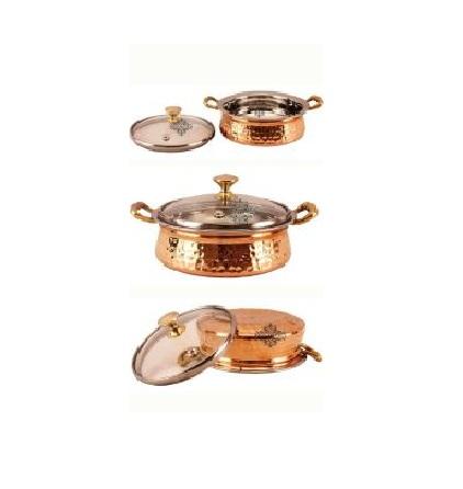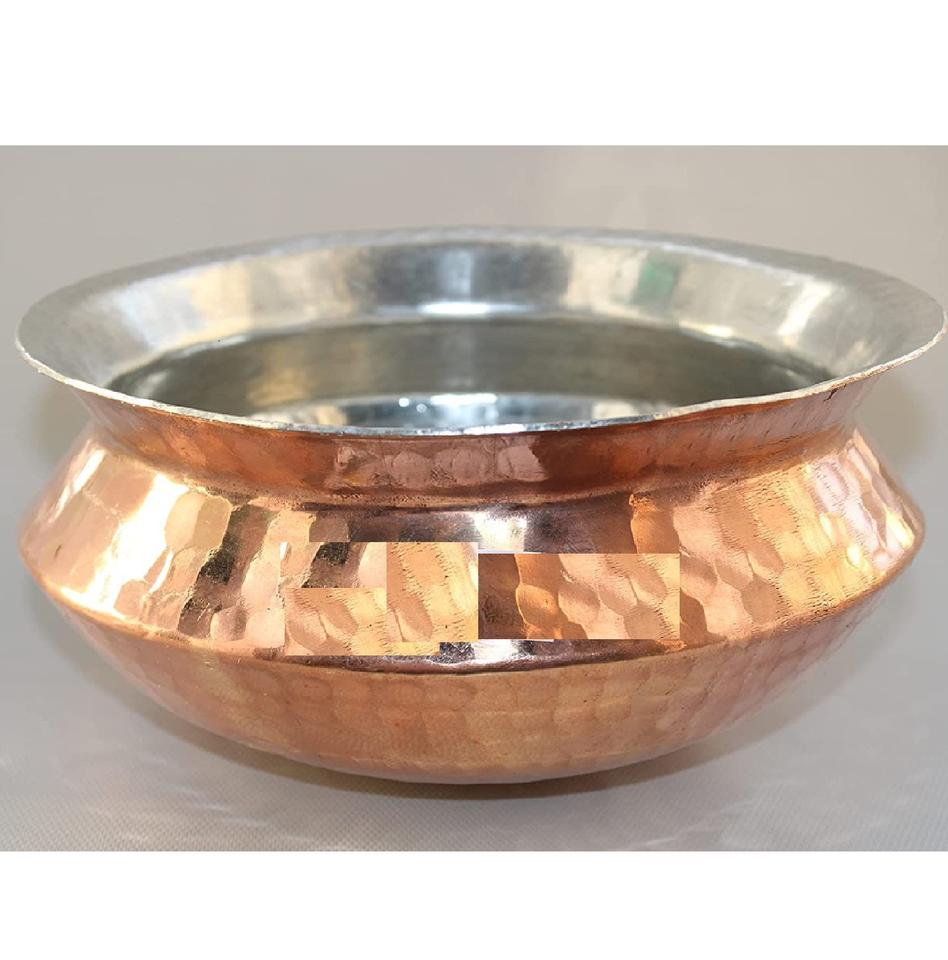 หม้อทองแดงโบราณแบบแบนพร้อมขาตั้งเพื่อสุขภาพ ดีไซน์ตอกลาย เรียบง่ายแต่ดูหรูหรา มีจำหน่ายในราคาที่แข่งขันได้