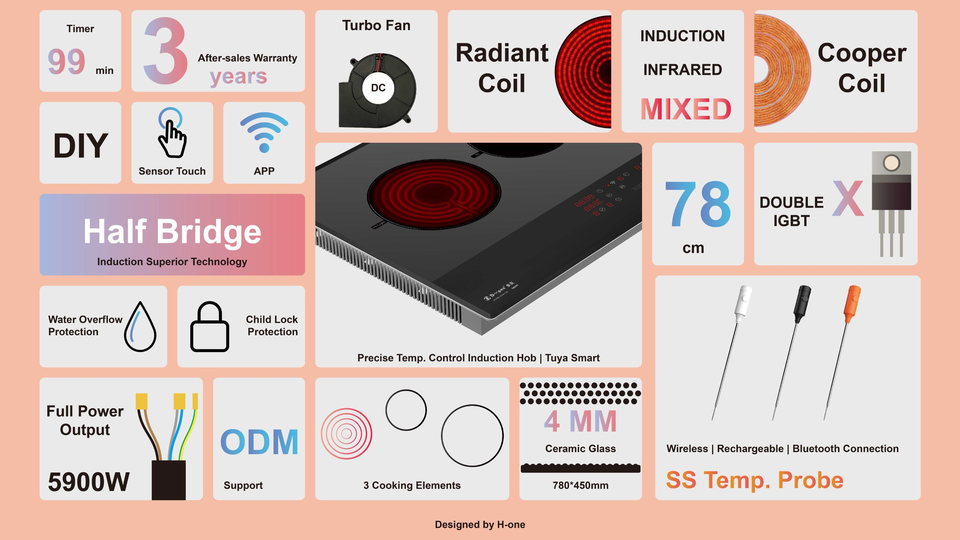 เตาแม่เหล็กไฟฟ้าแบบ3หัวเตาอินฟาเรดไฮบริด, เตาแม่เหล็กไฟฟ้าเตาแม่เหล็กไฟฟ้าเตาอัจฉริยะในตัว