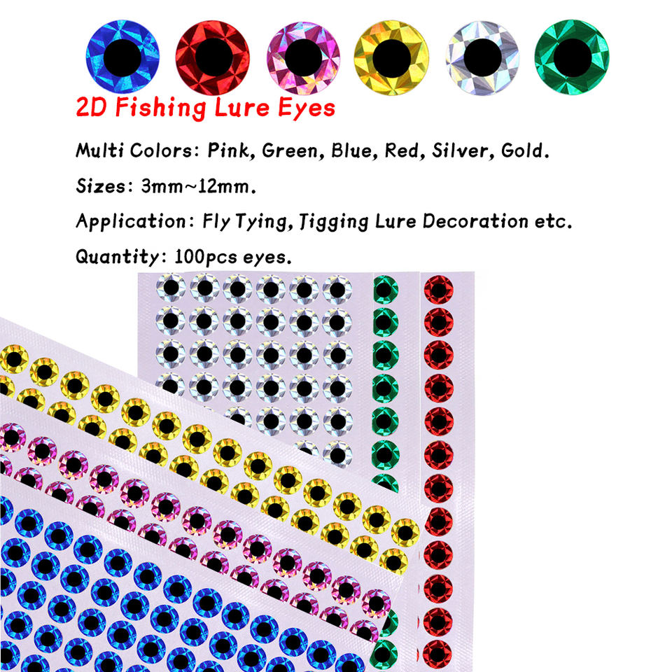 ตาปลอมสำหรับเหยื่อตกปลาแบบแบน 2 มิติ สติ๊กเกอร์ตาปลอมสำหรับตกปลาแบบสโลว์จิ๊กกิ้ง เหยื่อจิ๊กโลหะ ขนาด 3 มม.-12 มม. วัสดุสำหรับผูกเหยื่อตกปลา