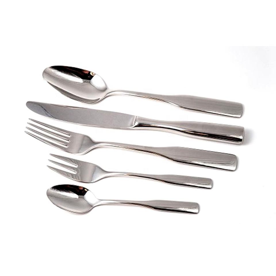 ชุดเครื่องใช้บนโต๊ะอาหารด้ามแบนสแตนเลสสีเงินขัดเงาชุดเครื่องใช้บนโต๊ะอาหารด้ามยาวชุดเครื่องใช้บนโต๊ะอาหารอีพ็อกซี่เหล็กที่จับแบน