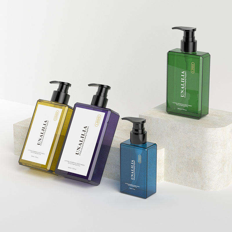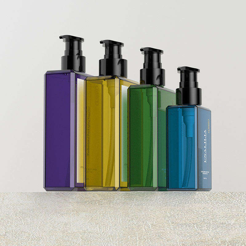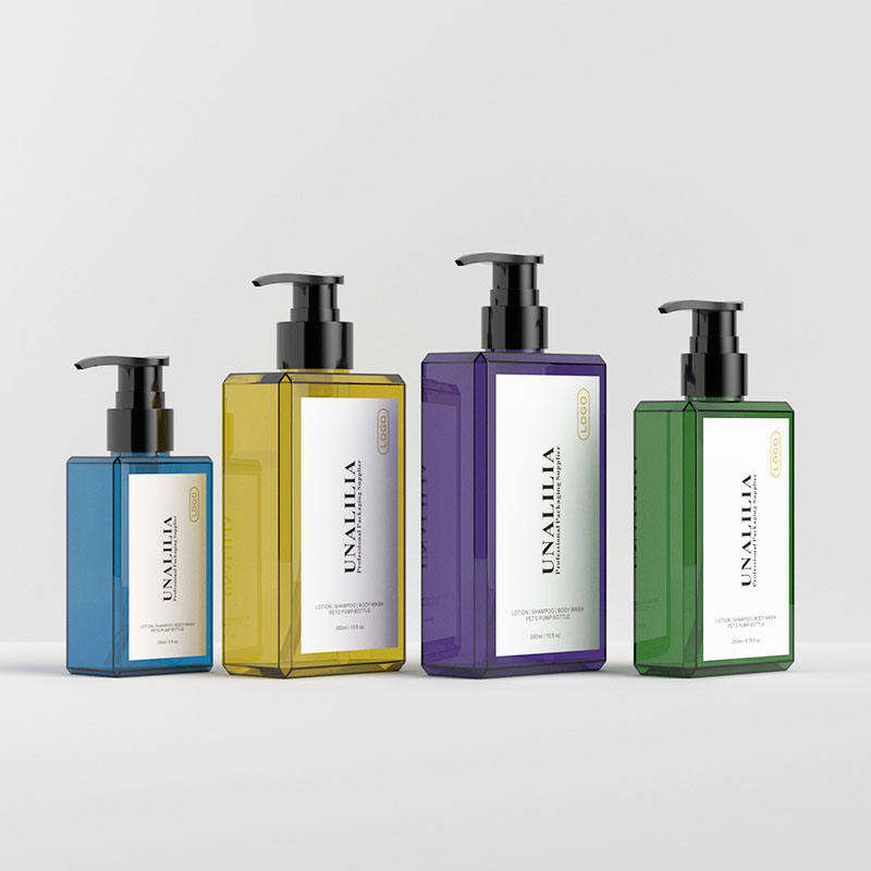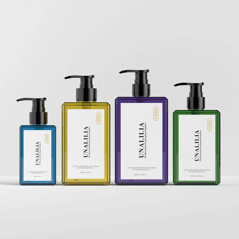 ขวดพลาสติก PETG แบบแบน พิมพ์ลายซิลค์สกรีน สำหรับปั๊มโลชั่น สเปรย์ แชมพู ครีมนวดผม บรรจุภัณฑ์เครื่องสำอางแบบกำหนดเอง ขนาด 150 มล. 200 มล.