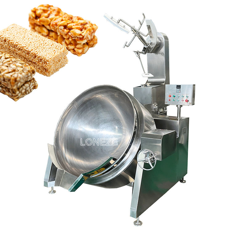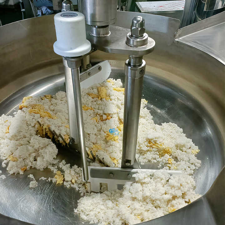 หม้อต้มไข่ดาวอัตโนมัติแบบก้นแบนพร้อมเครื่องกวนสำหรับทำอาหารประเภทแป้ง ใช้แก๊สอุตสาหกรรมสำหรับทำข้าวผัด