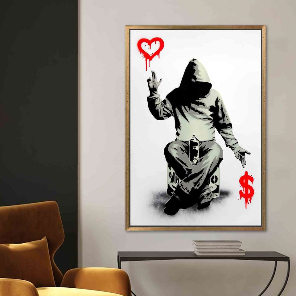 ภาพพิมพ์บนผ้าใบแบนสกี้: ของตกแต่งผนังลายความรักหรือเงินตรา พร้อมกรอบสีทอง