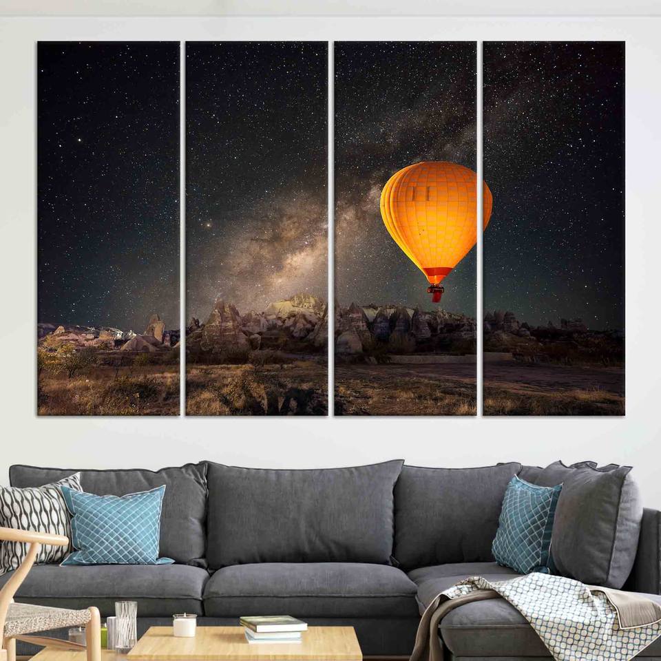 ผ้าใบพิมพ์ลายเรียบ: งานศิลปะบอลลูนลมร้อนคาปปาโดเกียสุดหรู ชุดผ้าใบ 4 ชิ้น