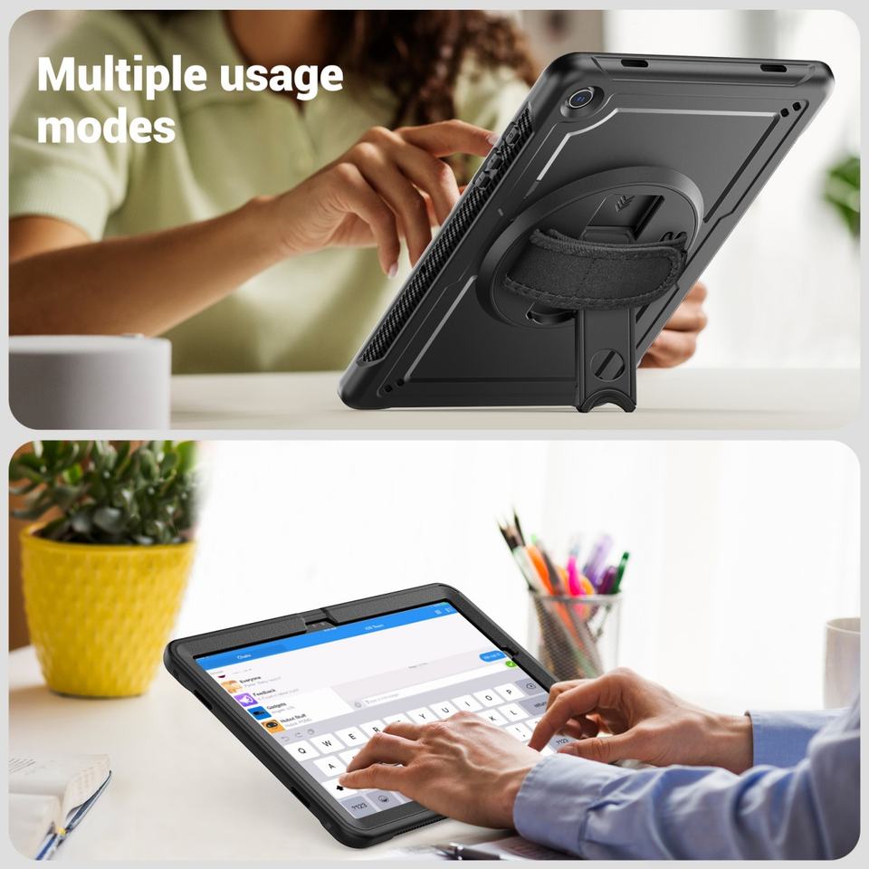 เคสป้องกันแบบแบนพร้อมขายึดหมุนได้ ลายรังผึ้ง ป้องกันการตกกระแทกและงอได้ สำหรับ Samsung Tab A9 Plus