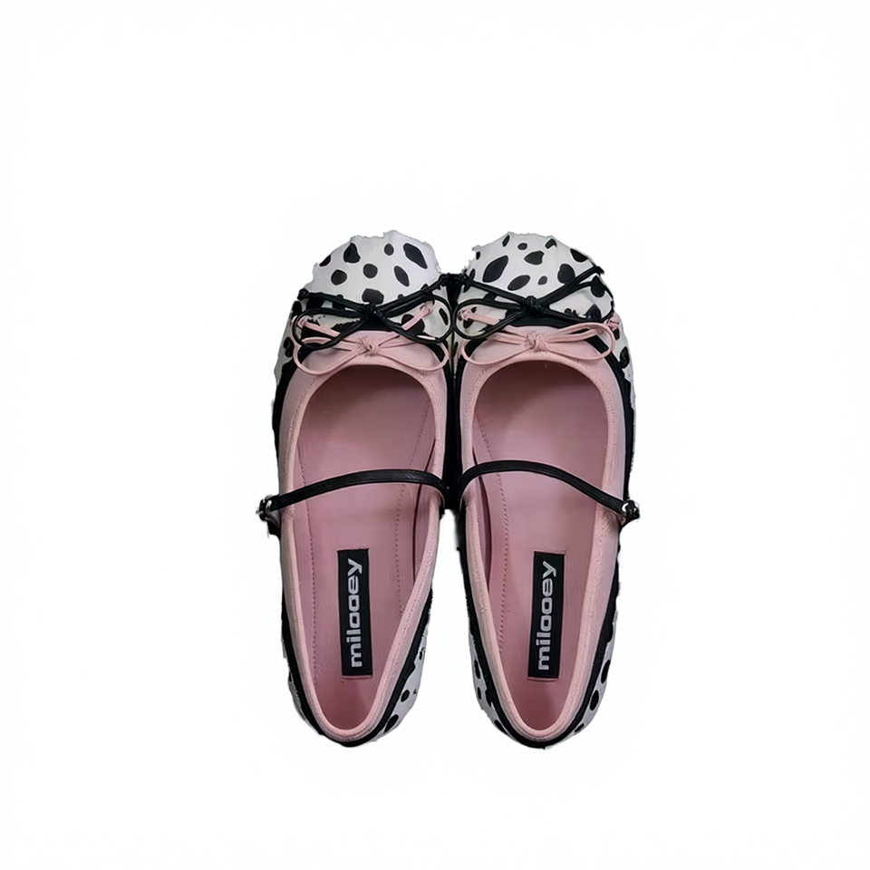 TD Ella รองเท้าส้นเตี้ยหนังแท้สำหรับผู้หญิง, พื้นรองเท้าใส่สบายกันลื่นนุ่มปิดนิ้วเท้าพิมพ์ลายฤดูใบไม้ร่วง