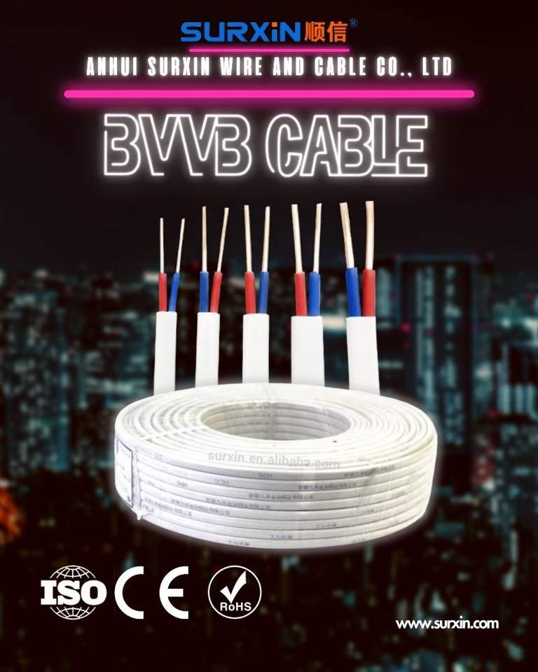 สายเคเบิลปลอกแบน BVVB 2 core 1.5 2.5 4.0mm ² สำหรับพื้นผิวสายไฟภายในบ้าน