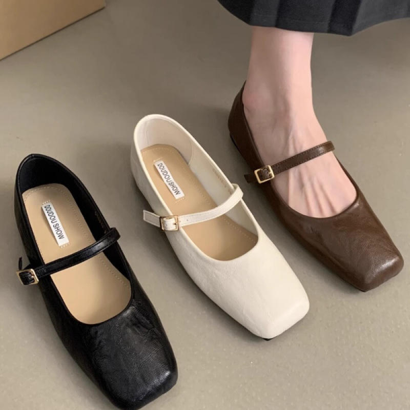รองเท้าส้นเตี้ยสำหรับผู้หญิงแฟชั่นใหม่รองเท้าตื้นเขินสำหรับฤดูใบไม้ร่วงรองเท้าลำลองผู้หญิงไซส์43 44