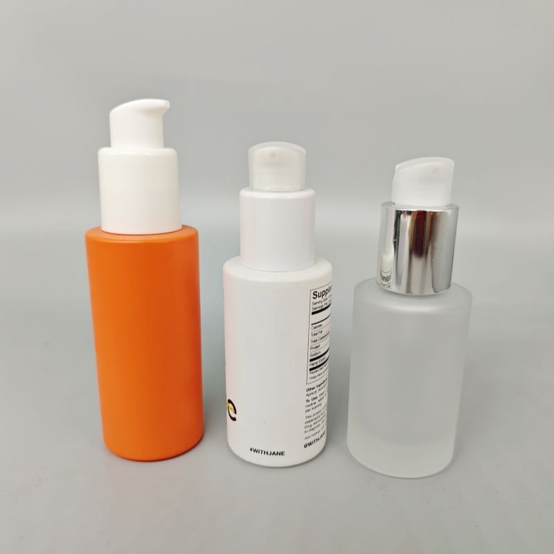 ขวดแก้ว2ออนซ์พร้อมปั๊มสำหรับการรักษาผมและน้ำมันหอมระเหยขวดแก้วพร้อมปั๊มทรงแบนสะพายไหล่ทรงแบน1ออนซ์