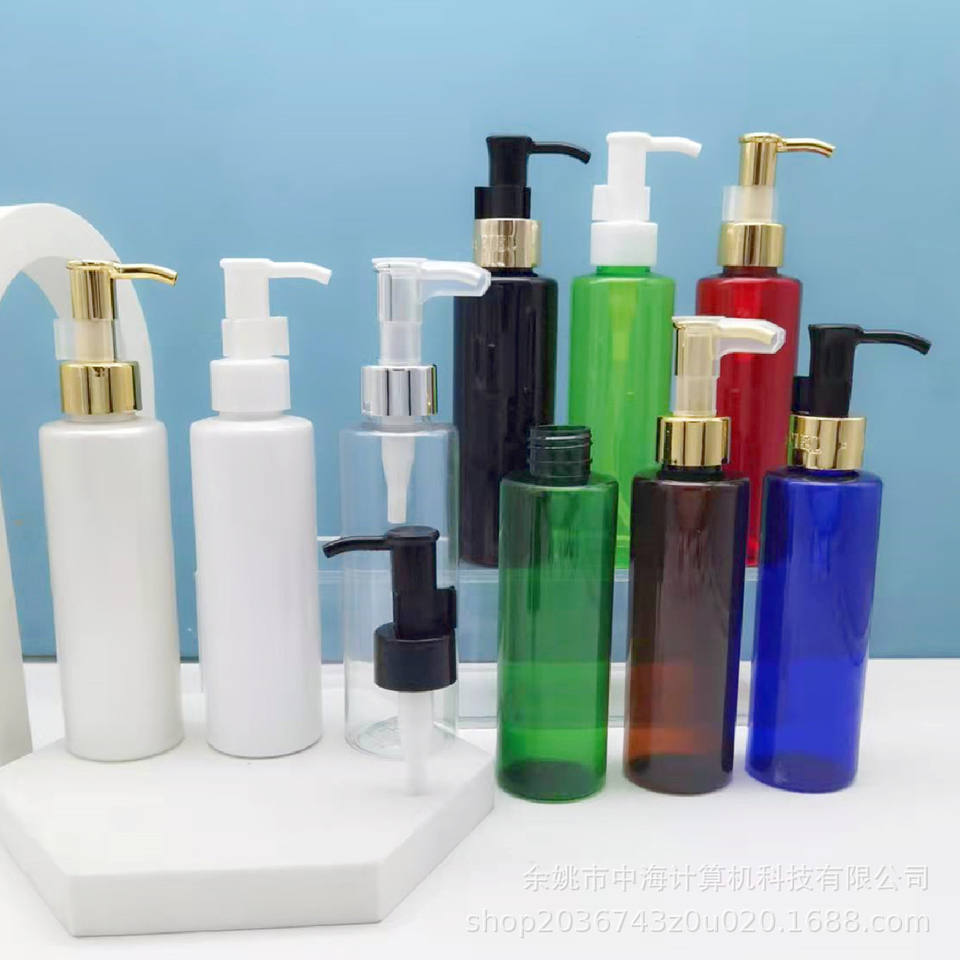 ขวดปั๊มน้ำมันพลาสติกทรงแบน 150 มล. แบบกด สำหรับบรรจุภัณฑ์เครื่องสำอางและน้ำยาล้างเครื่องสำอาง