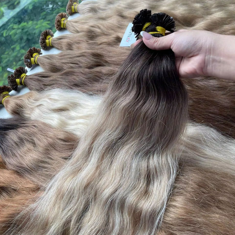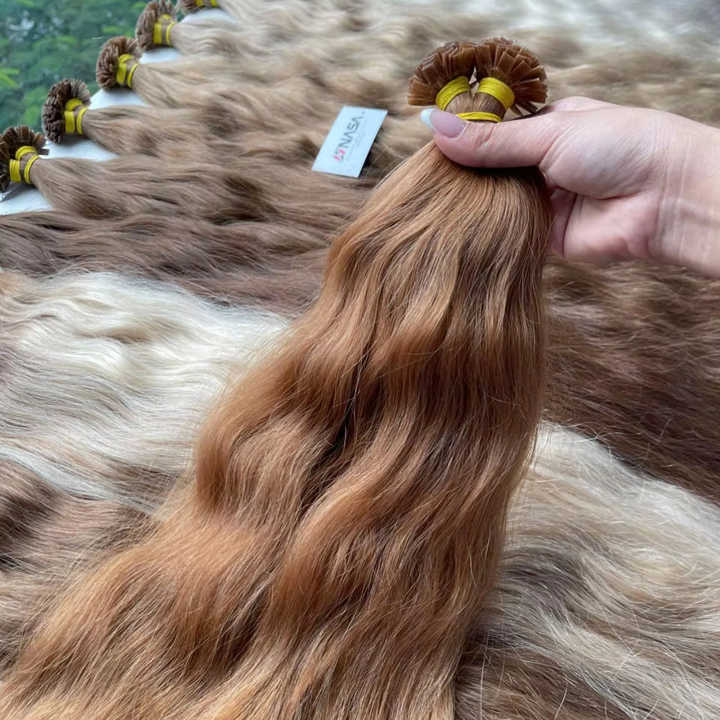 ผมต่อปลายแบนสีน้ำตาล2025 50ซม. 100% เวียดนามผมคนเดียว donnor ราคาโรงงาน