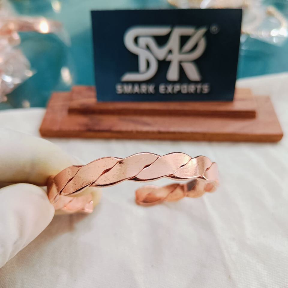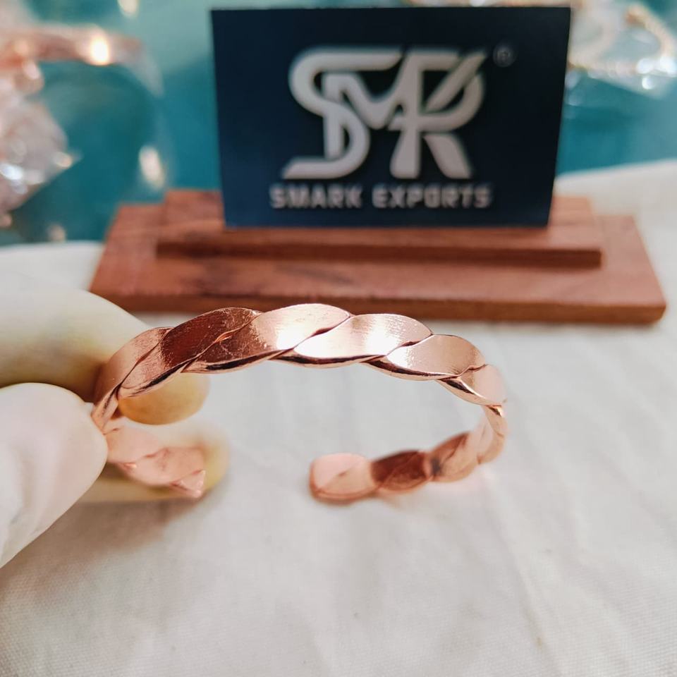 กำไลทองแดงแบบแบน ปรับขนาดได้ งานโลหะทำมือ ผิวเรียบขัดเงา ดีไซน์ดั้งเดิม น้ำหนักเบา เรียบง่าย