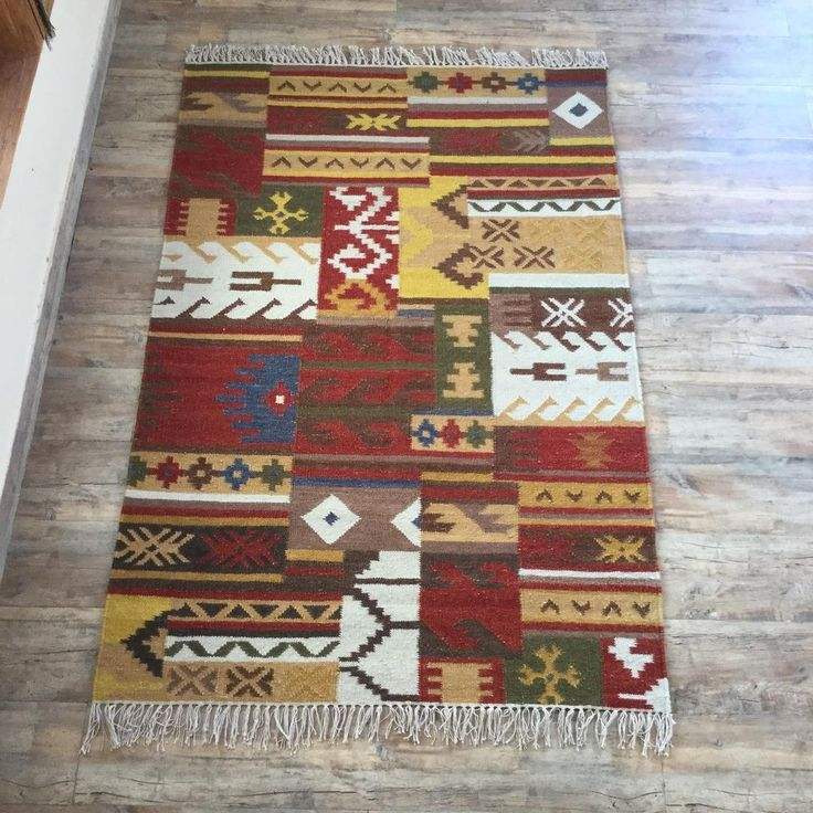 พรมและชุดสำหรับตกแต่งบ้านขนสัตว์ปอกระเจาถักลายเรขาคณิต