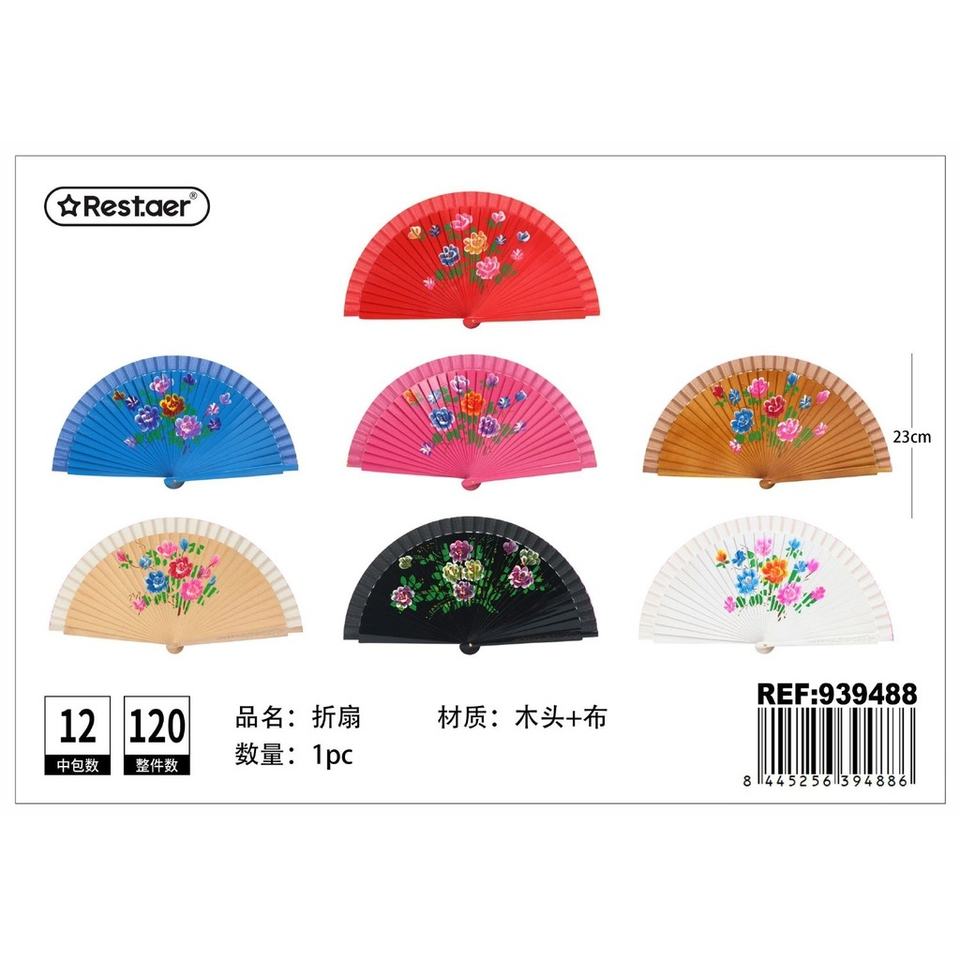 Flat multicolored painted wooden fan - Seasonal and decorative products