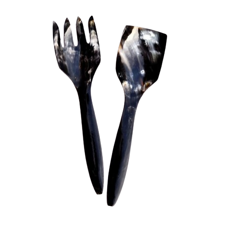 ช้อนสลัด ช้อนส้อม ด้ามจับทำจากวัสดุเคลือบสีดำ ดีไซน์ทันสมัย เหมาะสำหรับงานเลี้ยง อาหารค่ำ น้ำหนักเบา ใช้ในครัว