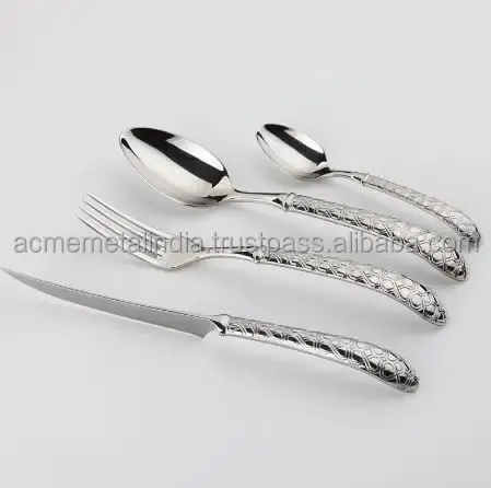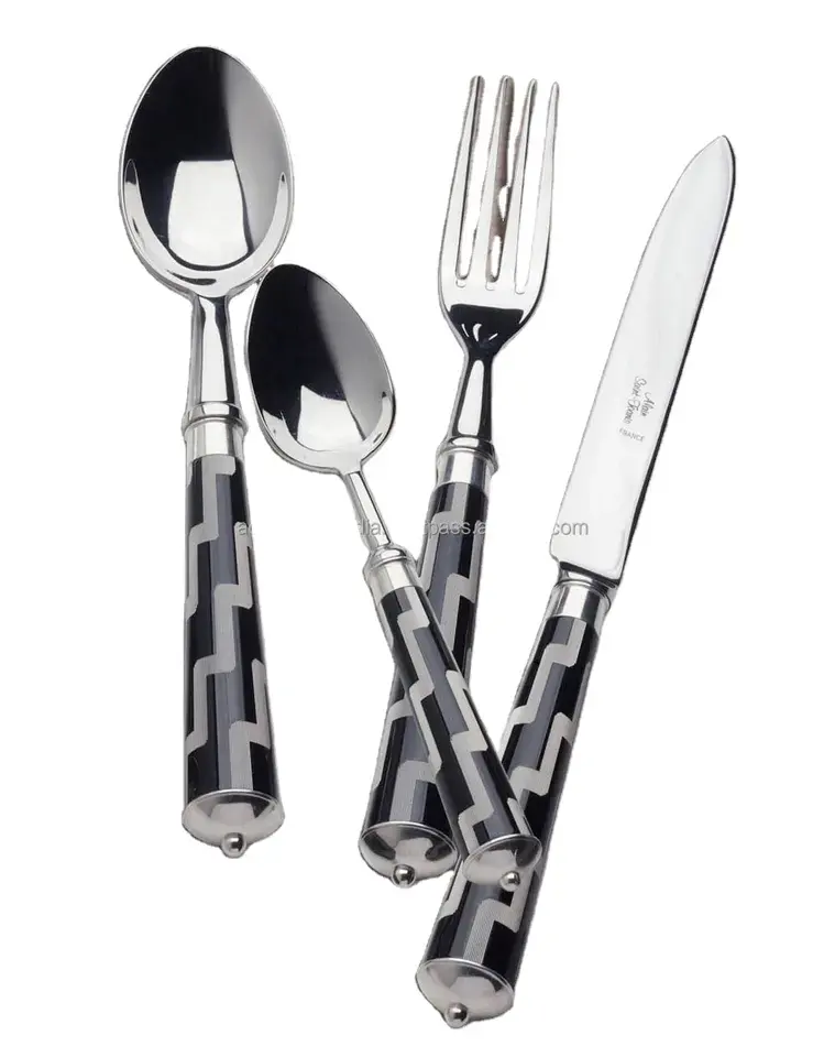 ชุดช้อนส้อมสแตนเลสคุณภาพดีสุดพิเศษเครื่องเงินพร้อมด้ามเคลือบสีดำสีเทา