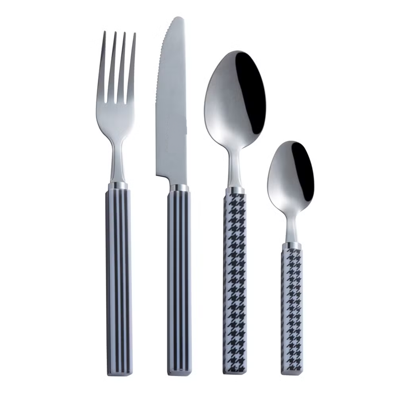 ชุดเครื่องใช้บนโต๊ะอาหารด้ามเรซินสำหรับใช้ในบ้านเครื่องครัวเหล็กมิเรอร์มีดชุดช้อนส้อมขัดเงาอย่างดีที่สุด