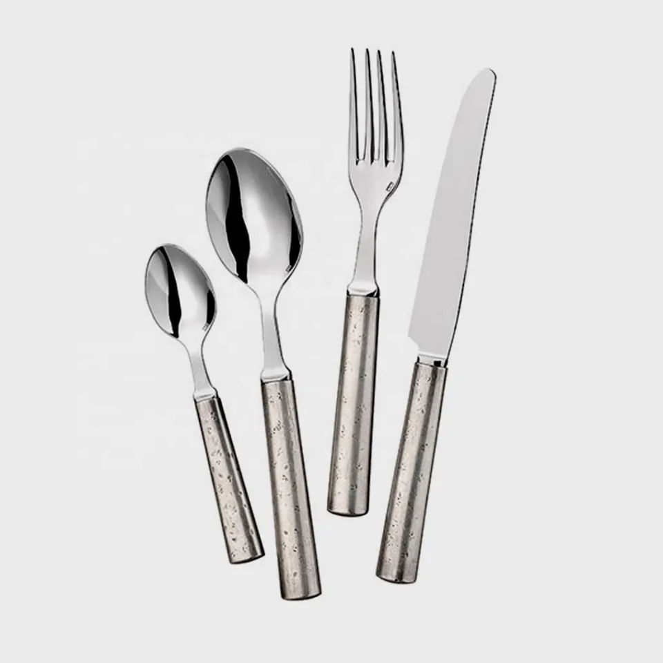 ชุดเครื่องใช้บนโต๊ะอาหารสำหรับงานแต่งงานด้ามไม้ช้อนสแตนเลสกระจกและส้อมสำหรับเครื่องครัวและร้านอาหาร