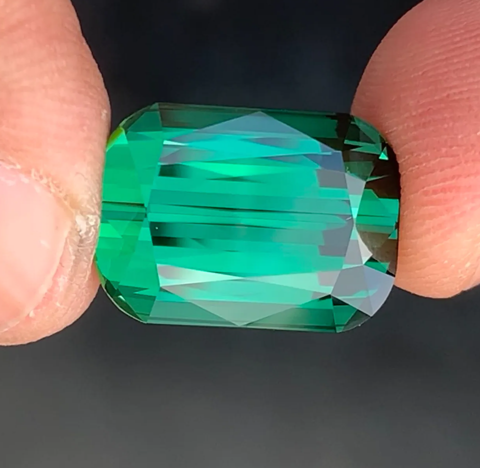 พลอยแซฟไฟร์สีเขียวธรรมชาติ 16.78 กะรัต ทรงแอสเชอร์ คุณภาพเยี่ยม พร้อมการเปลี่ยนสีจากอัฟกานิสถาน