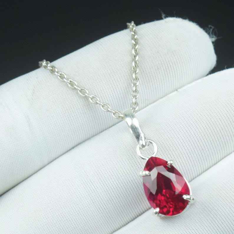 จี้รูปหยดน้ำทับทิมสีแดงสดใสไร้ตำหนิ เงินแท้ 925 สไตล์วินเทจ สร้อยคอ ของขวัญวันเกิด วันวาเลนไทน์