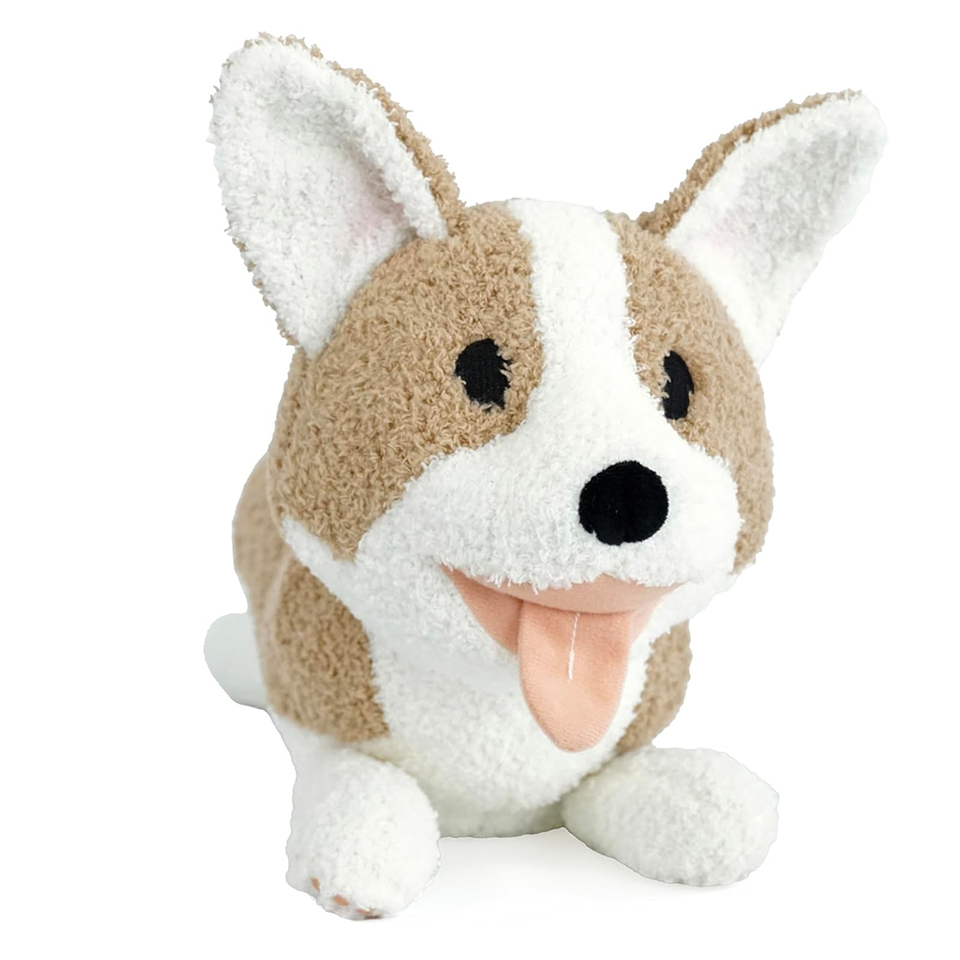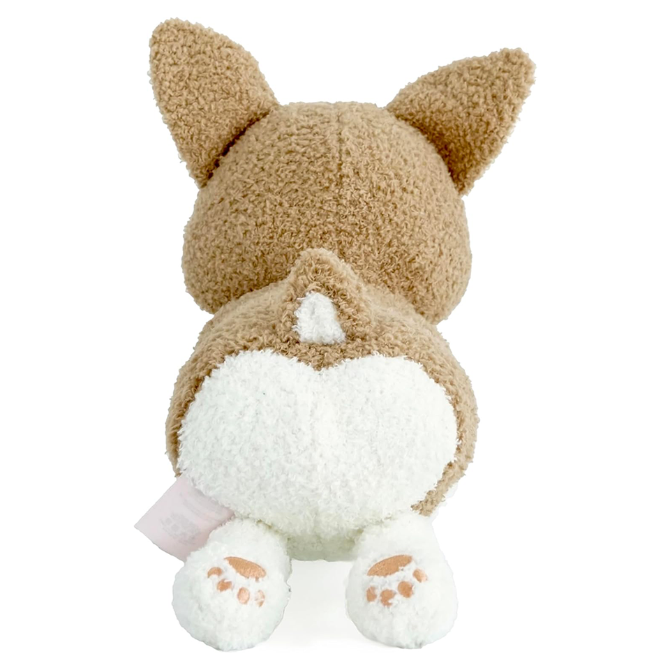 ขนแกะหัวใจก้นสีชมพูอุ้งเท้าเล็กๆสีน้ำตาลสีขาวเหมือนหมาคอร์กี้ยิ้มตุ๊กตาสัตว์ยัดนุ่นนุ่มเหมือนมีชีวิต