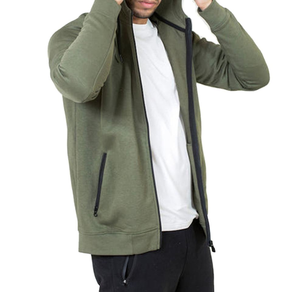ชุดวอร์มลำลองผู้ชายมีฮู้ดผ้าฟลีซกับแขนยาวมีซิปแขนแร็กแลนแต่งขอบริม