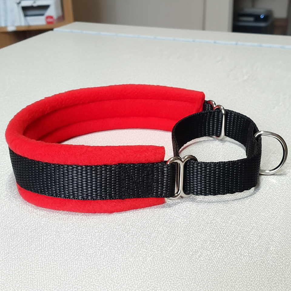 ปลอกคอสุนัขแบบมาร์ติงเกลกำมะหยี่สีแดงดำแบบปรับได้